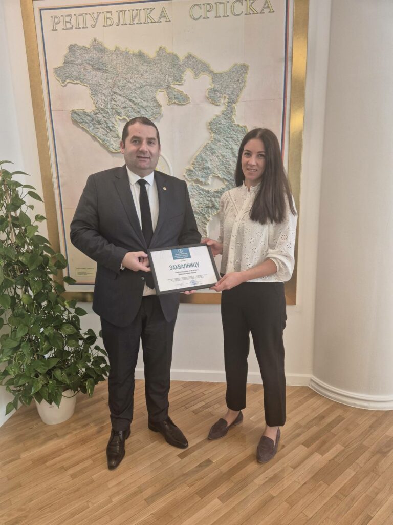 Dana 27. oktobra 2025. godine u prostorijama Republičke uprave za geodetske i imovinsko-pravne poslove, predsjednica Društva geodetskih inženjera i geometara Republike Srpske, Tatjana Sarajlić, uručila direktoru Uprave, mr Draganu Stankoviću, zahvalnicu u znak iskrene zahvalnosti za kontinuiranu podršku koju Republička uprava pruža Društvu — kako u organizacionom, tako i u finansijskom smislu, čime značajno doprinosi razvoju geodetske struke u Republici Srpskoj.